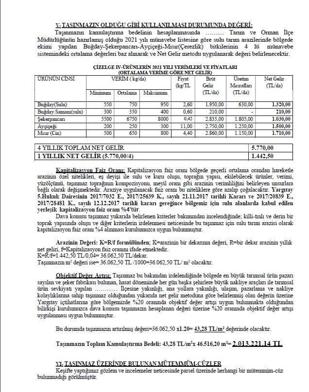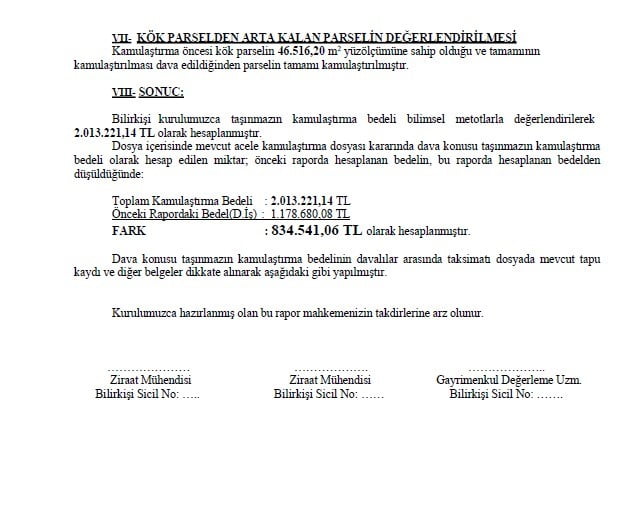Kamulaştırma Bedelinin Tespitine ilişkin örnek Bilirkişi Raporu: